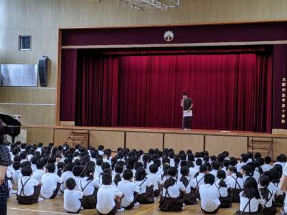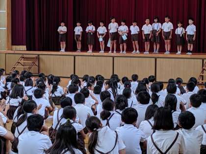 校長先生からは、1学期のふりかえりのお話がありました。夏休みの生活で気をつけることについてもお話がありました。