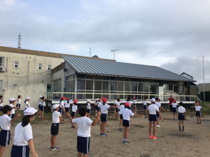 朝の集いです。今日は、お天気もなんとかもちそうです!