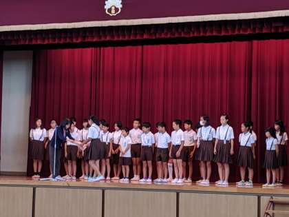 夏休み中に、大阪市小学生スポーツ交流会に参加したみなさんの表彰がありました。