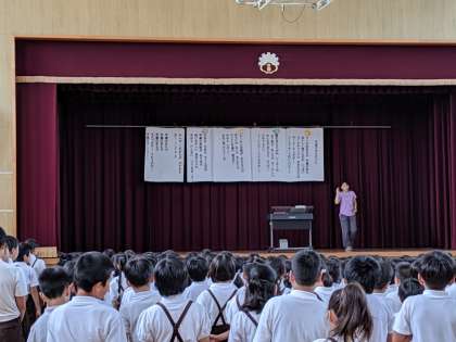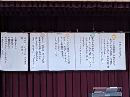 今日の児童集会は、「平尾のまちのうた」の練習をしました。