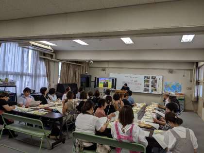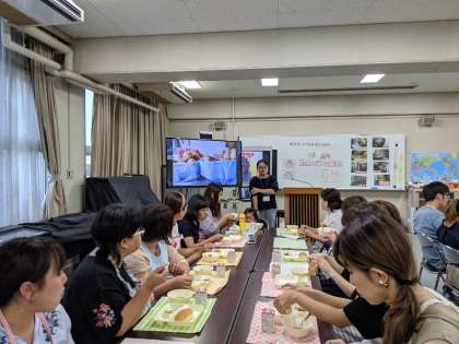 栄養教諭から、給食ができるまでの話や普段の子どもたちの様子などを聴きながら、なごやかに給食をいただきました。