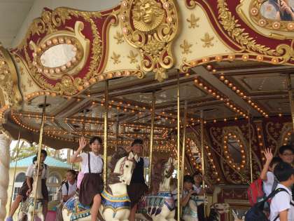 グループで仲良く行動してアトラクションを楽しんでいます。