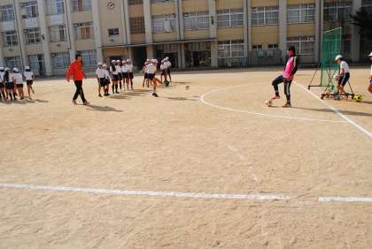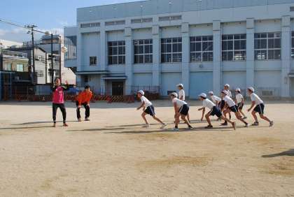 6年生を対象にフットサル体験を行いました。Fリーグ シュライカー大阪所属の斎藤秀人選手はじめ3名の方にお越しいただきました。パス、シュート、ゲームをしてボールをうまく扱う方法を教えていただきました。子どもたちは、プロの選手を前に緊張していた様子でしたが授業が進むにつれて徐々にほぐれ、楽しく運動することができました。