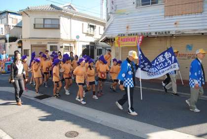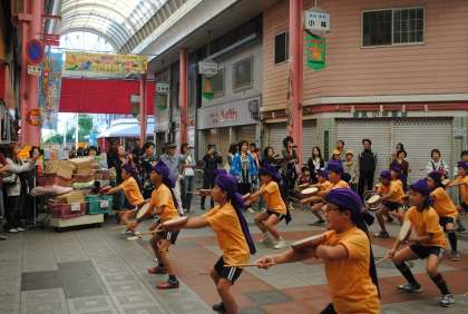 10月19日(日)に行われた大正区民祭りで、地域の方々とともに5年生がパレードに参加し、サンクス平尾商店街でエイサーを披露しました。
