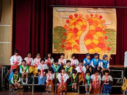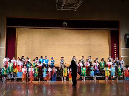 3年生は、劇「3年とうげ」に取り組みます。「3年とうげ」は韓国・朝鮮の民話です。色鮮やかな手作りのチョゴリを着てリハーサルを行いました。