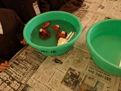2年生は、学習園でさつまいもを大切に育ててきました。収穫したさつまいもをいよいよ調理します。今日は、ピーラーで皮をむきました。