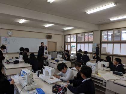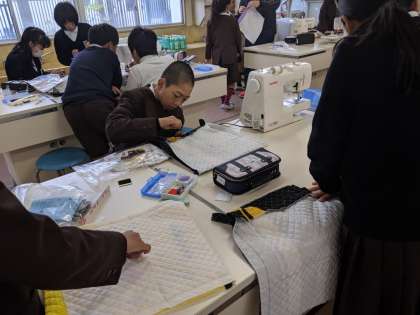 5年生の家庭科では、ナップサックづくりに取り組んでいます。