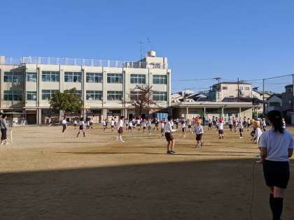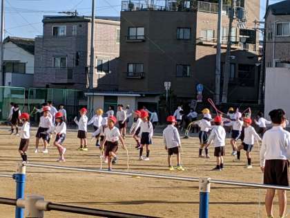 金曜日の朝の時間は、1〜3年生のなわとびタイムです。