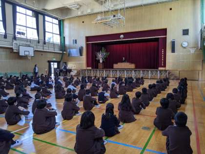 修了式は、2部制で行いました。前半は、1・3・4年生です。
