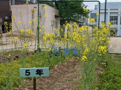 アブラナ(菜の花)の花言葉は、「快活」「明るさ」だそうです。5年生のみなさんにぴったりですね。