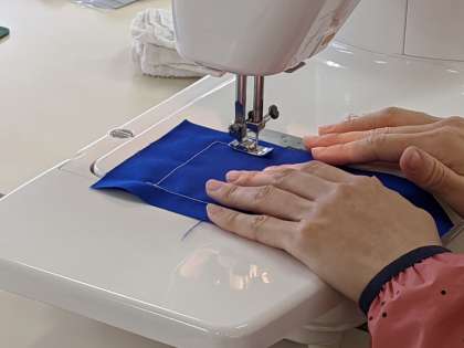 今日は、出勤している先生たちで、研修会を行いました。ミシンの使い方や基本的な縫い方などを確認し、マスクづくりに取り組みました。