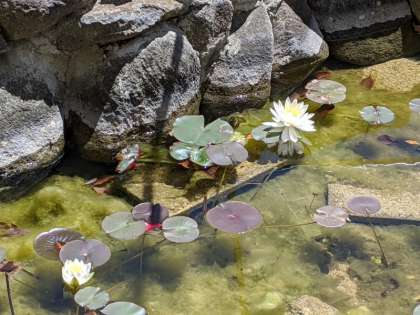 いけの なかを よ〜〜〜〜くみると 「めだか」が およいでいますよ。みえるかな?