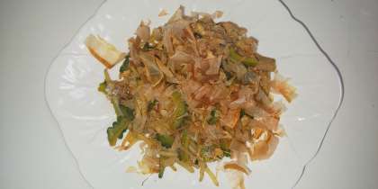 5.お皿に盛り付け、上からかつおぶしをかける。