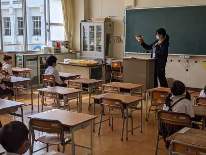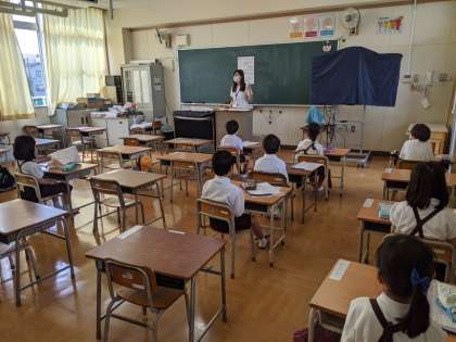 1年生は、朝の準備の仕方や返事・あいさつの練習をしました。