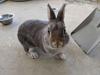 うさぎの『ルーシー』が くらしています。こやの なかを はしりまわっています。