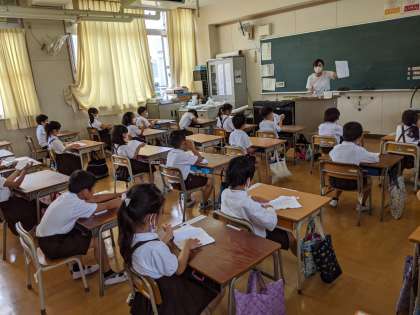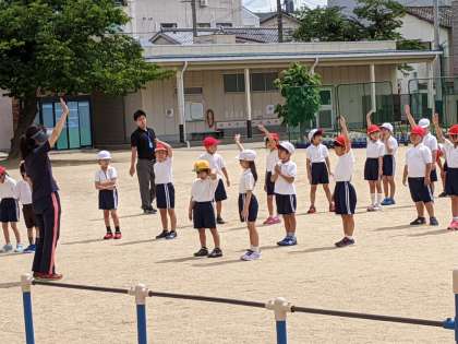 今週と来週は、分散登校の形をとりながらですが、授業が始まりました。運動場で…、教室を2つにわけて…、広い部屋を使って…など、工夫しながら学習活動を進めています。