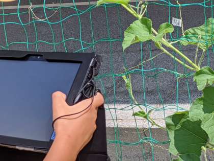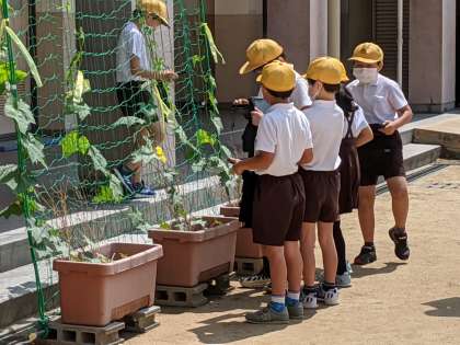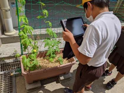 理科の学習で、タブレット端末を使いながら、ヘチマやヒョウタンの観察をしていました。