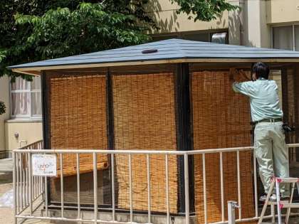 ルーシーのために、管理作業員さんがすだれをつけてくださいました。