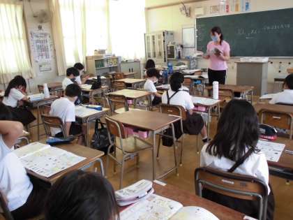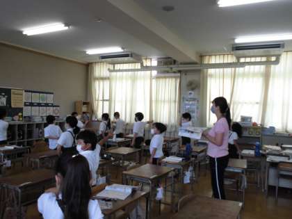 3年生の社会の時間は、いろいろな国のあいさつをクイズ形式で楽しく学習していました。