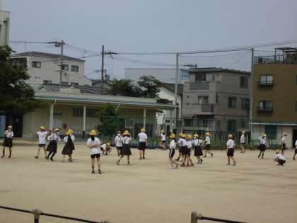 普段は、感染症予防のためにマスクを着けていますが、外遊びの時には、帽子をかぶって、マスクははずします。