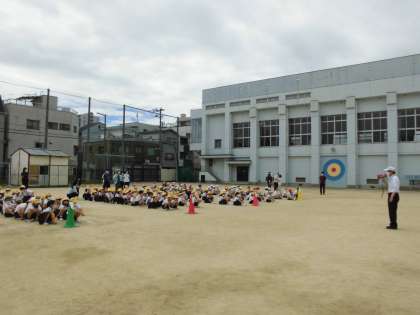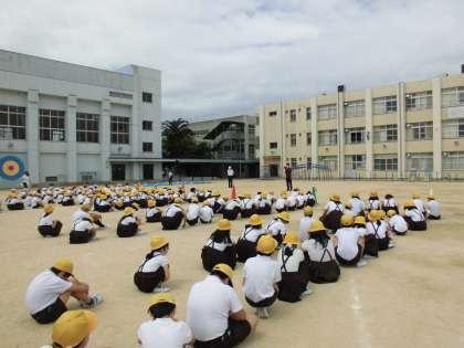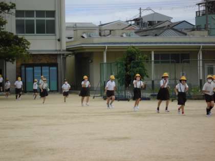 今週は、1年生から5年生までの2組の子どもたちで、火災を想定した避難訓練を行いました。真剣な表情で、訓練にのぞんでいました。