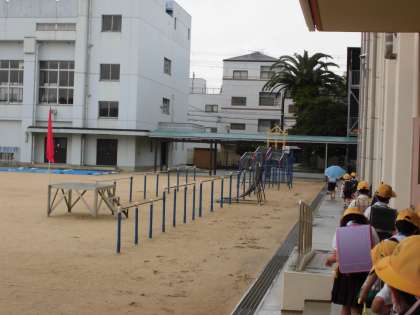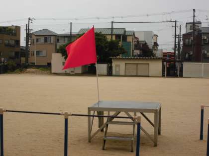 運動場の赤旗をリニューアルしました。前の赤旗より大きくなったので、子どもたちにとっても新鮮だったようです。