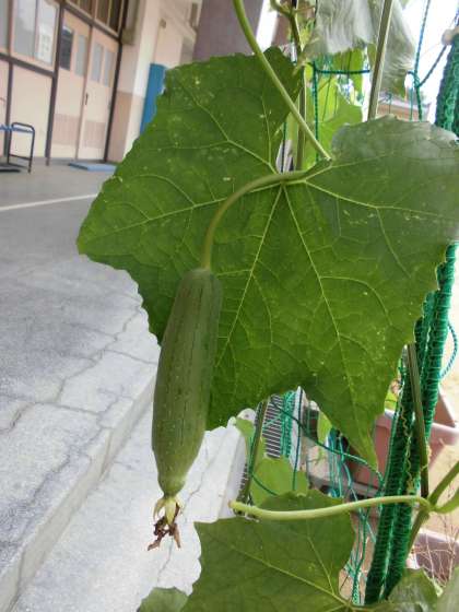 どんどん大きくなっています。観察している4年生が驚くほどの変化です。ついに2階の高さまでとどきました。