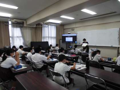 5年生の算数は、3つのグループにわかれて学習しています。合同な三角形の図形のかき方を考えました。