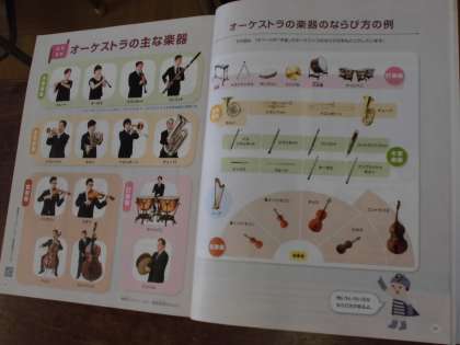 オーケストラについて学習していました。弦楽器のバイオリン、ビオラ、チェロ、コントラバスは、楽器の大きさが大きくなると、音が低くなるということに気づいていましたね。最後に、もし、自分がするなら選びたい楽器を一つ考えていました。