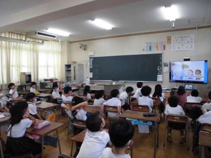 今年度は、火曜日・木曜日・金曜日の昼の時間が、イングリッシュタイムです。どのクラスも、楽しそうに取り組んでいました。
