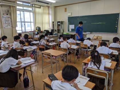 2年生の算数の学習では、ものさしの使い方について学習していました。ひと目盛りずつ確かめながら、ていねいにノートに書いていました。