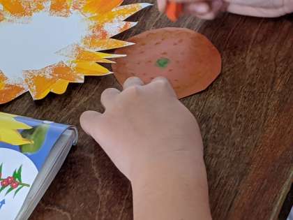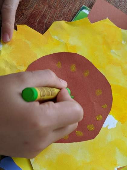 3年生の図工では、ひまわりの仕上げをしました。それぞれの持ち味があふれる作品に仕上がりました。