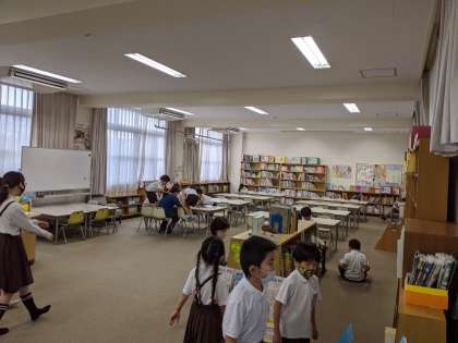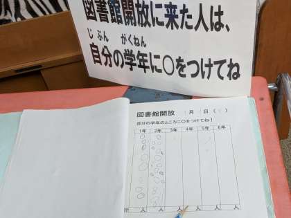 火曜日の昼休みは、図書館開放があります。今日は、低学年の人たちの利用が多かったようです。
