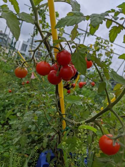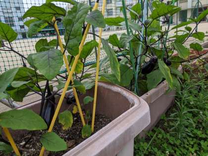 平尾小学校の学習園でも、夏野菜がぐんぐんと育っています。
