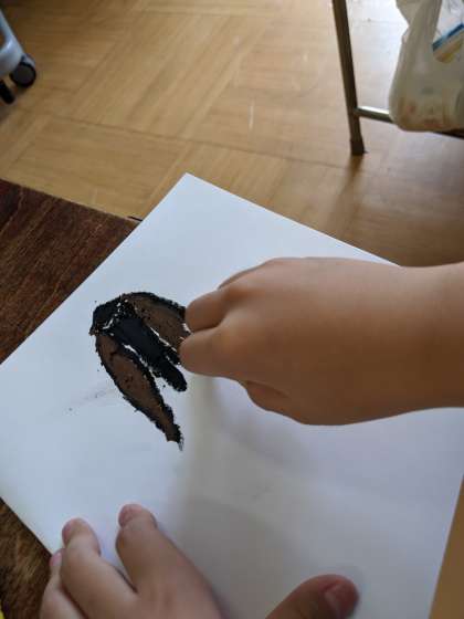 ひまわりの花のスタンピングから始まった制作ですが、花と葉を完成させ、今日は葉にとまる昆虫を描きました。理科の時間に学習したことも思い出しながら描きました。完成が楽しみですね!