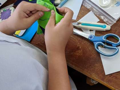 5年生の家庭科では、小物づくりに取り組んでいます。玉止めや玉結びも上手にできるようになってきました。
