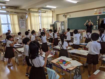 「だるまさんがいいましたゲーム」でした。「だるまさんがいいました」という言葉がついているときだけ、その通りにします。ひっかからないように、教室のスピーカーから聞こえてくるせりふをよく聞いていました。