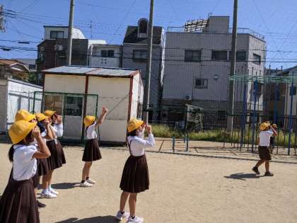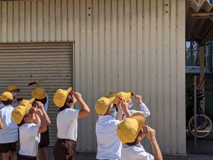 しゃ光板を使って、自分のかげと太陽の位置を調べたり、遊具などのかげの向きと太陽の位置を調べたりしました。