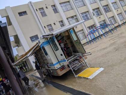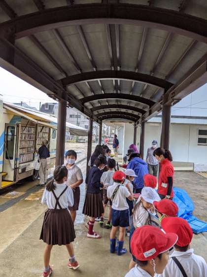 今日は、学校に移動図書館がやってきました。楽しみにしていた子どもたちも多かったようです。