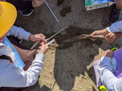 3年生の理科では、日なたと日かげの地面の温度を調べました。初めて温度計を使って調べました。