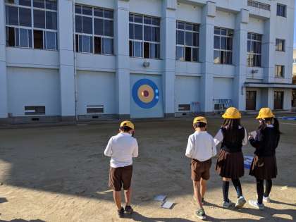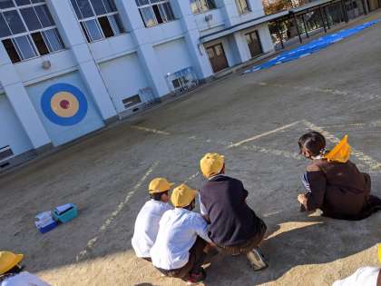 かがみで日光をはね返してまとに当てたり、日光をまとの中心にあつめたりしました。