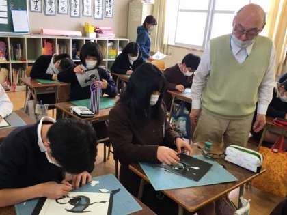 平尾小学校で行う切り絵教室は、今年でなんと7年目だそうです。毎年、干支にちなんだ切り絵を教えてくださっているので、「お姉ちゃんがやっていた!」と楽しみにしている子もいました。