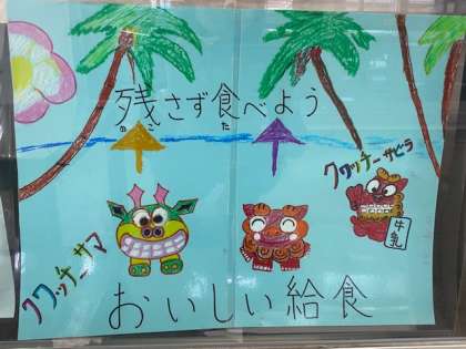 給食室のシーサーもにっこり笑顔であいさつをしていますよ!