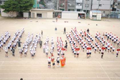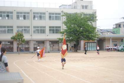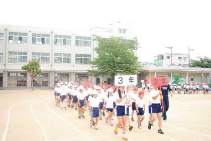 雨上がりの少しぬかるんだ運動場でしたが、子どもたちは元気に行進していました。