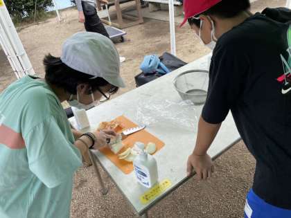 調理・火おこし、それぞれの役割に分かれて相談しながら仲良く作ることができました。