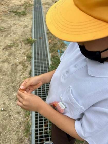 生活科の時間、1学期に植えたフウセンカズラの種を収穫しました。茶色くなったフウセンカズラをそーっと破いてみると、たくさんの種が入っていました。子どもたちも初めての経験で大興奮した様子でした。