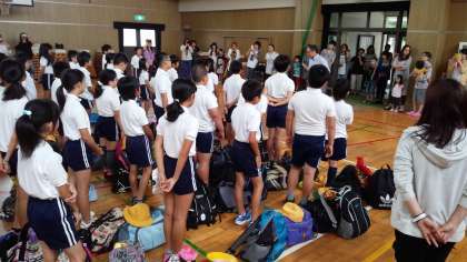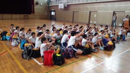 19日8時20分5年生は全員そろって林間学習・赤目方面へ出発しました。台風の影響が心配されますが、初めての宿泊行事にみんなはりきっています。この後も状況をホームページにてお知らせします。