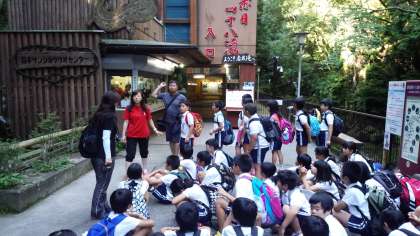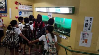 サンショウウオセンターに到着。オオサンショウウオについて学習しました。川で自然のサンショウウオに出会えるかな?