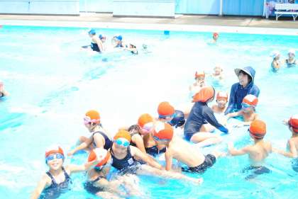 今日からプール開放が始まりました。低学年85名、高学年52名が参加し、気持ちよく水しぶきをあげていました。林間学習を終えた5年生や明日から林間学習の6年生も多く参加しました。自由時間には泳ぐ速さや潜る時間を競ったり、譲り合って遊具を使ったりする姿がみられました。
