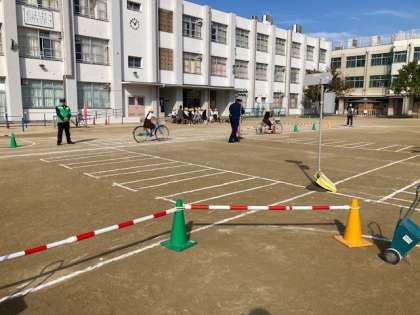 また、実際に自転車に乗って、運動場を道路に見立てて安全を意識して運転することができました。